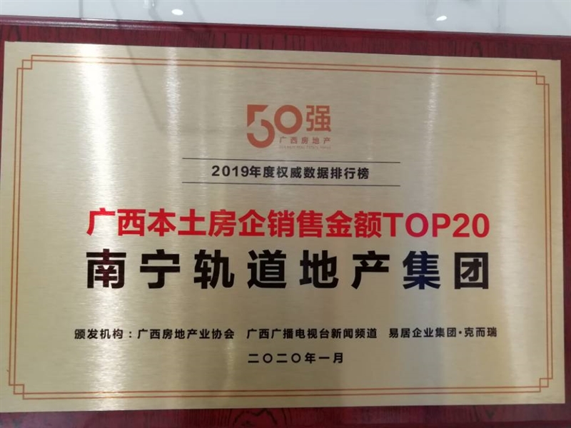 • 公司榮獲2019廣西本土房企銷售金額TOP20獎項