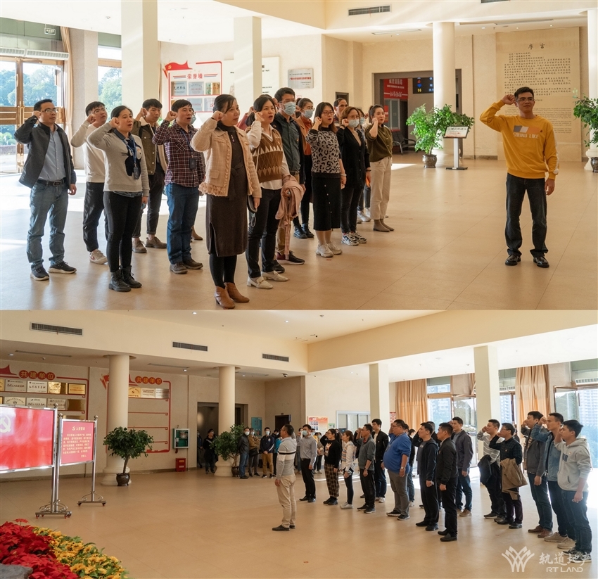 參觀結束后,公司黨員干部面向鮮紅的中國共產黨黨旗,莊嚴地舉起右手,重溫入黨誓詞?!拔抑驹讣尤胫袊伯a黨……隨時準備為黨和人民犧牲一切,永不叛黨?!?span lang="EN-US">