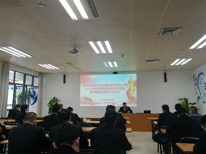 為深入學(xué)習貫徹黨的二十大及二十屆中央紀委二次全會會議精神,推進公司全面從嚴治黨和黨風廉政建設(shè)工作,增強全體黨員干部的廉潔自律意識,營造風清氣正的廉潔過節(jié)氛圍,2023年1月17日南寧軌道地產(chǎn)物業(yè)公司黨支部在東站樞紐培訓(xùn)室召開2023年黨風廉政建設(shè)警示教育暨春節(jié)前集體廉潔談話,公司全體黨員、入黨積極分子、中層管理人員共47人參加了此次會議。
