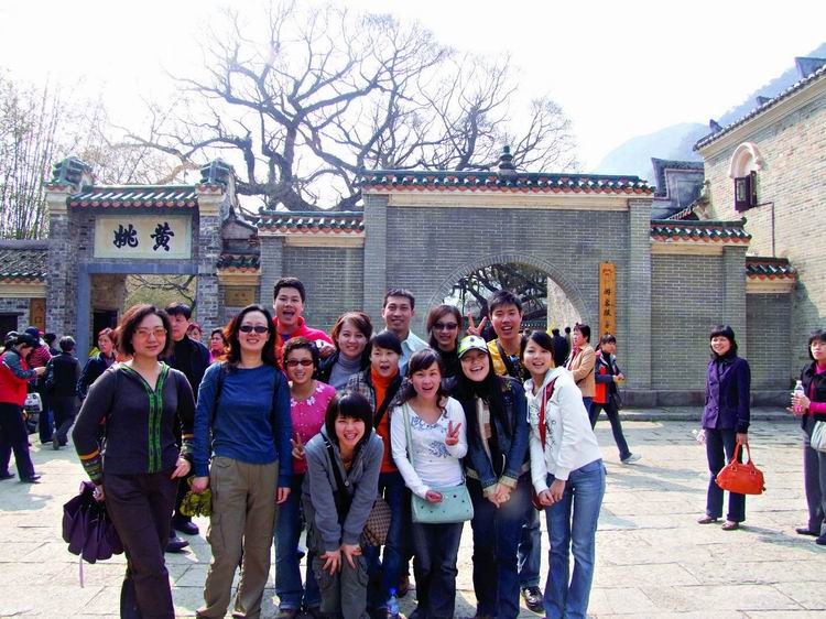 第三日清晨,整裝待發(fā)八點(diǎn)前往黃姚古鎮(zhèn)。賀州是粵東的一座新興城市,而黃姚,卻有著近千年的厚重。從古鎮(zhèn)入口前左邊的一條岔路走進(jìn)去,首先觸目的便是一條清澈的小溪、一棵參天的古榕樹,我們開始細(xì)細(xì)觀賞這個(gè)小鎮(zhèn)。古榕的軀干伸向小溪,又從空中垂下縷縷氣根,與水中的倒影連為一體。溪邊水井里清可見底,偶有小魚游動(dòng)。據(jù)說黃姚是按九宮八卦陣式布局,鎮(zhèn)上的石板街有8條,共99999塊青石板,最早鋪砌于清順治年間。年代久遠(yuǎn),不知有多少人走過,青石板已被磨得像鏡子般光滑,隱約泛著人影。橋下的姚江,如今看水依舊清碧,可是繁華不再,顯赫的牌匾也只能靜靜地訴說著昔日的輝煌。石板路的小村落很安靜,人們過著日常的生活,村婦們?cè)诰^溪邊,淘菜洗衣,交流信息,菜渣、閑話都隨溪水流去,并不對(duì)外來的游客有格外的好奇。孩子們快樂地嬉戲著,在那些蜿蜒的巷子里不時(shí)冒出他們快樂的喧嘩。宗祠府第這樣的舊時(shí)輝煌不經(jīng)意地散布于鎮(zhèn)上的民居之中,亭閣前的聯(lián)匾,記錄著文人騷客對(duì)黃姚的鐘愛,只是年代遠(yuǎn)去,如今物是人非。陽(yáng)光下的青石板路上有時(shí)候也會(huì)躺著狗或者貓,你從它們身上跨過去的時(shí)候,它們會(huì)懶懶地翻翻眼皮,然后繼續(xù)睡在陽(yáng)光里。雞們顯得勤快些,會(huì)邁著方步走在你前面東看看西瞅瞅,如果你不急,它會(huì)一直走在你前面,時(shí)間對(duì)它們沒有任何意義。還有那些老房子,任何一座都可能藏著一個(gè)故事。結(jié)了蛛網(wǎng)的窗欞恐怕已有了幾百年的歷史,但是沒有人把這當(dāng)成了不得的事情,一切如常,平靜隨意。