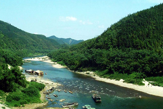 乘著小船游蕩在清澈見底的融江上,兩崖修竹挺立,草兒碧青,令人心醉神迷。到了一片漂亮的蘆葦區(qū),大家歡呼著下了船。愛攝影的尋找最佳角度,喜歡奇石的盡情挑選河石,愛美的朋友則三五成群的相互拍照,留下自己美麗的倩影,我當(dāng)然也就成了其中一員。